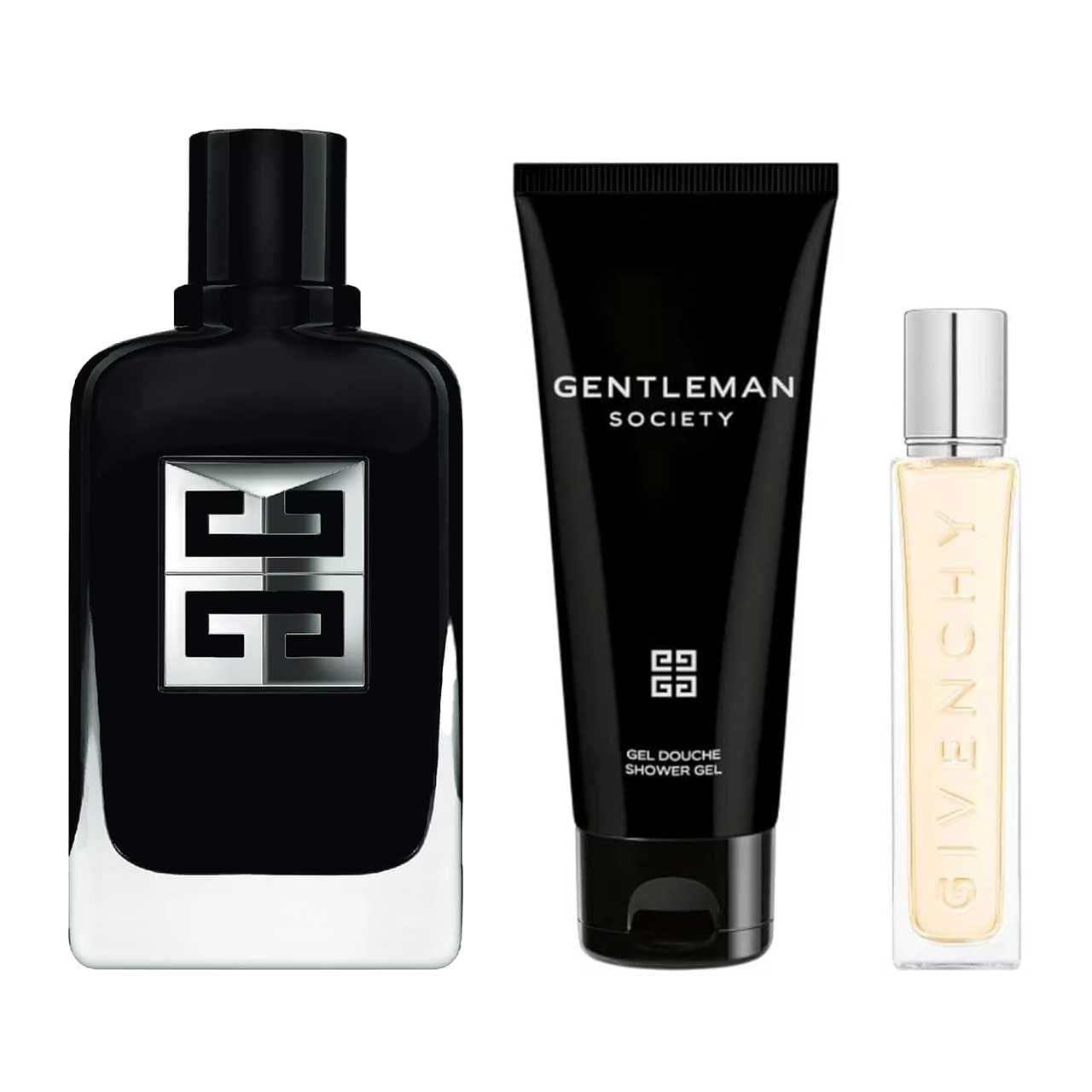 Descubre el sofisticado Set de Hombre Givenchy Gentleman Society, una fragancia que encapsula la esencia del hombre moderno y elegante. Este set incluye un agua de perfume de 100 ml, un mini 12.5 ml y un gel de ducha 75 ml, brindando una experiencia completa de cuidado personal.
